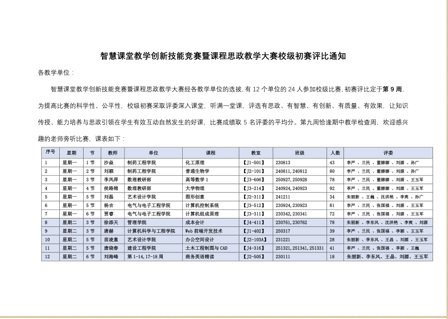 智慧课堂教学创新技能竞赛暨课程思政教学大赛校级初赛安排